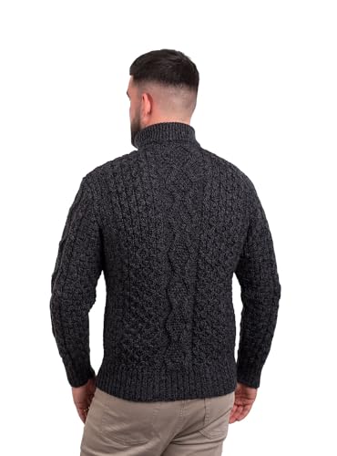 SAOL Men’s Aran Zip Neck Sweater – 100% Wool Fisherman Knit Pullover – Made in Ireland 5