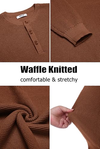 COOFANDY Men's Henley Knit Sweater Long Sleeve Button Pullover Sweater Casual Waffle Texture Fashion Henley Sweater 6