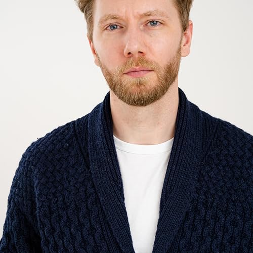 SAOL Men's Cardigan Merino Wool Knit Shawl Collar Casual Sweater with Buttons 4