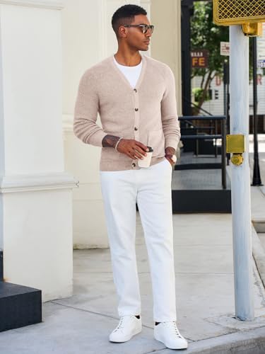 • DESIGN: These mens cardigan sweaters are feature with button up closure, v neck, long sleeve, two side pockets, ribbed cuffs and hem, slim fit style for a classic look. Provide a modern and flattering look, adds a touch of sophistication to your outfit