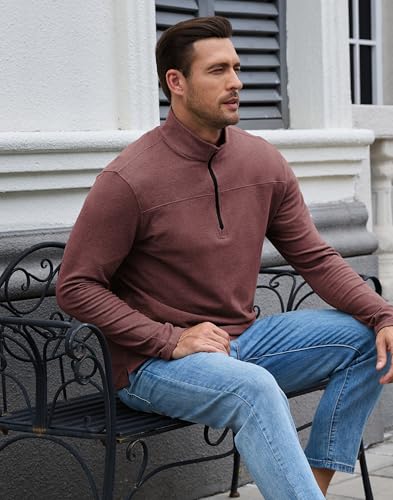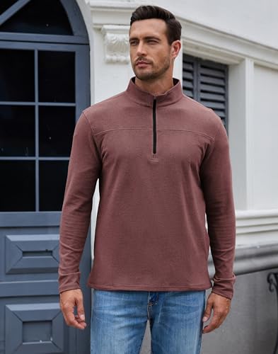 M MOTEEPI Mens Fleece Quarter Zip Up Pullover Sweater Slim Fit Lightweight Mock Neck Long Sleeve Sweaters For Men 7