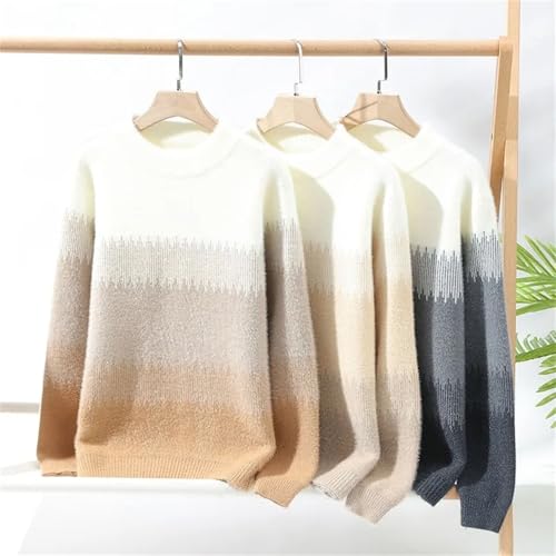 Mens Gradient Knitted Sweaters Warm Fashion Patchwork O Neck Knit Pullovers 6