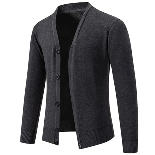 HOT ! Men’S Slim Fit V-Neck Fleece Lined Knitted Cardigan Long Sleeve Button Up Warm Sweater Outerwear