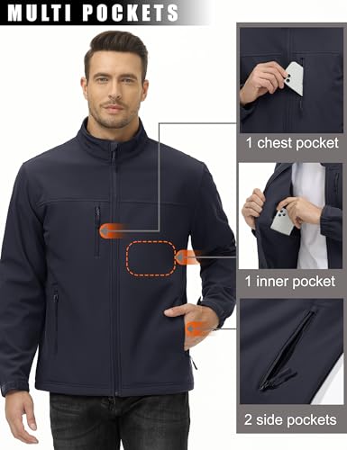 MAGCOMSEN Men's Lightweight Softshell Jacket Fleece Lined Tactical Waterproof Windbreaker Rain Jacket for Outdoor Hiking 6