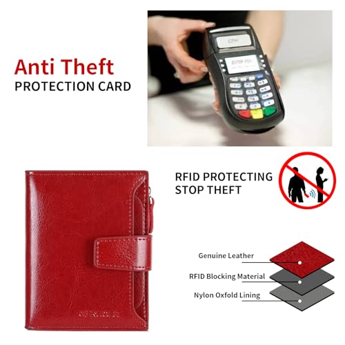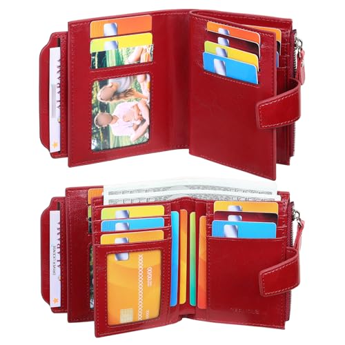 More information about Glossy Bifold Wallet for Men Large Capacity Genuine Bifold Leather Men Wallets RFID Blocking,With amazing storage capacity,Can be Window pulled Up Wallet,Oil Waxed Wallet (Red)