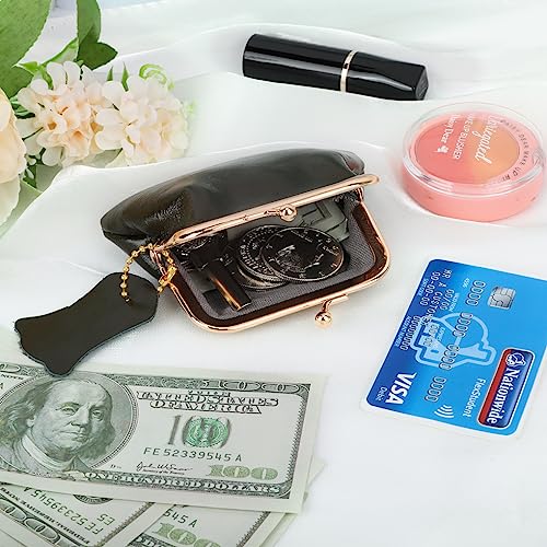 • 【Material】This little mini wallet/coin pouch is made of soft waxed leather,well-made and has lining inside, smooth and durable Excellent retro piece coin purse with clasp,tight and perfect,easy to open.