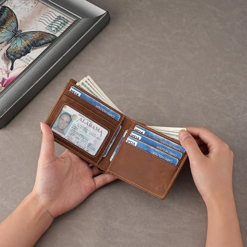 • Style: Horizontal Slim Rfid Blocking Genuine Leather Bifold Wallet, Easily Placed in the Back/Front Pocket.