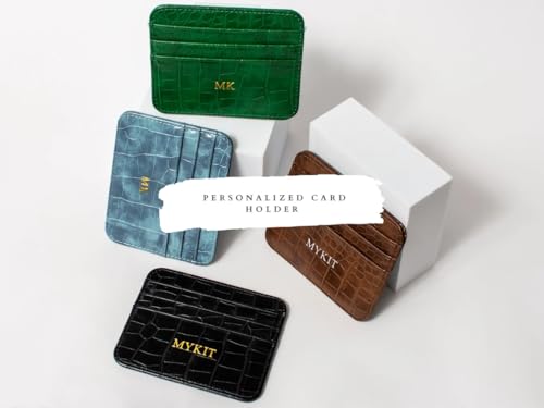 Customize Initial letters Credit Card Holder Wallet, PU Leather Ultra Slim Wallet, Thin Minimalist Credit Card Case Card Protector, Front Pocket Wallets for Men, Women (White) 7