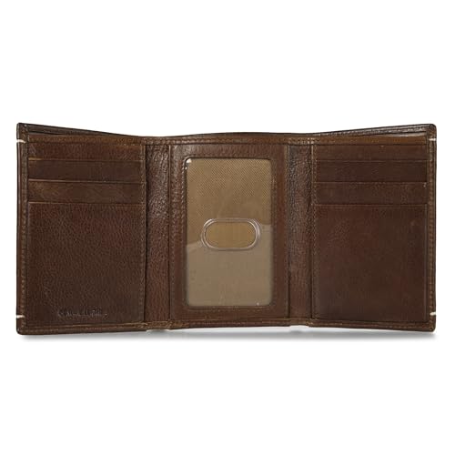 Lucky Brand Men's Trifold Wallet Id Window Card Slots Organization Durable Stylish, Grain Leather-Brown, Tri-Fold 4