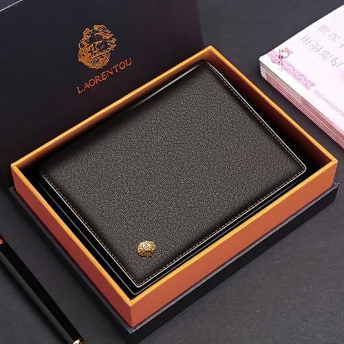 HOT ! LAORENTOU Wallet for Men Genuine Leather Bifold Stylish Wallet with ID Window Credit Card Holder (dark brown)