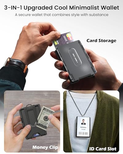 HOT ! Card Holder Slim Wallet for Men, Minimalist Wallet with ID Card Holder, RFID Blocking Ultra-Thin Aluminum Metal Wallet, Holds Up 15 Cards with Money Clip, Front Pocket, Credit Card Holder for Men