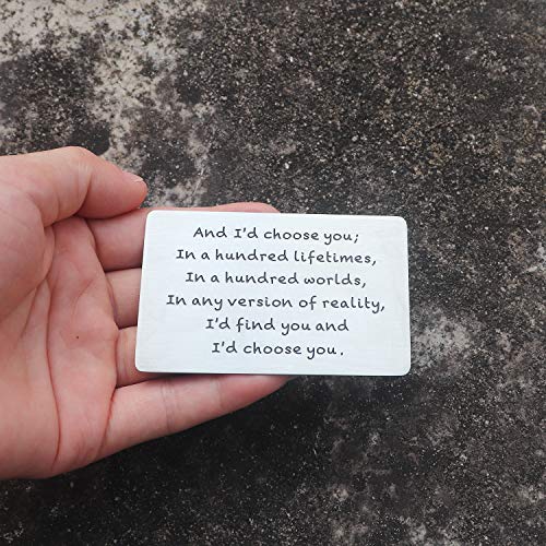 • GIFT IDEAS FOR HIM: What better way to express your love for someone than with a unique personalized engraved wallet insert. The card was engraved with romantic words, they are clear and easy to read, will not fade or scratch off!