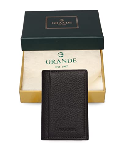 grande 3641 Genuine Leather Card Holder For Women and Men Minimalist Small Pocket Wallet Slim Vertical Card Case (Black) 3