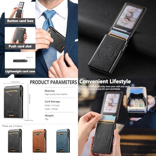 HOT ! HAII for Slim Metal Slot Leather Wallet for Men, Pop-Up Design, Holds 9 Cards, Minimalist Pocket Wallet (Wax Oil Black)