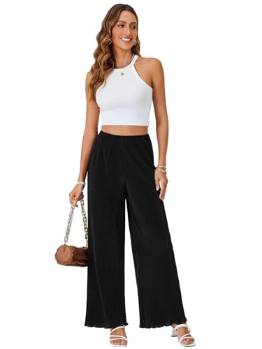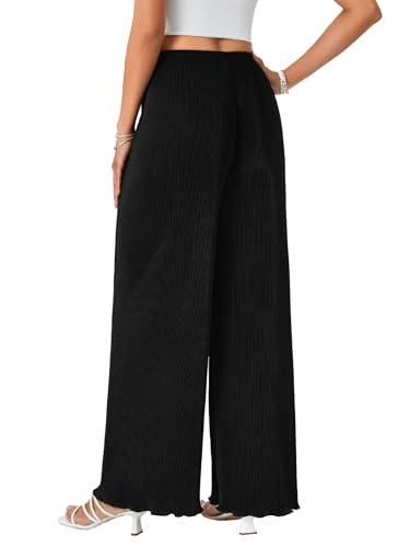 HOT ! LYANER Women's Casual Wide Leg Pants Pleated High Elastic Waist Flowy Loose Palazzo Pants Work Trousers