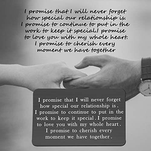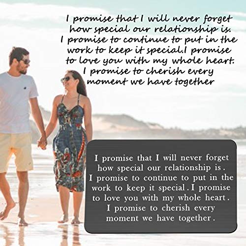 • ◆Engraved Wallet Insert-This Wallet Insert hand stamped with the words”I promise that I will never forget how special our relationship is.I promise to continue to put in the work to keep it special.I promise to love you with my whole heart.I promise to cherish every moment we have together”