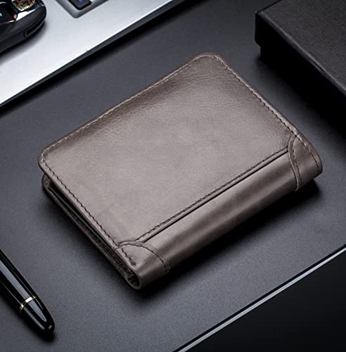 HOT ! BULLCAPTAIN Genuine Leather Bifold Men Wallet RFID Blocking Credit Card Holder Minimalist Wallet with 2 ID Window (Dark Grey)