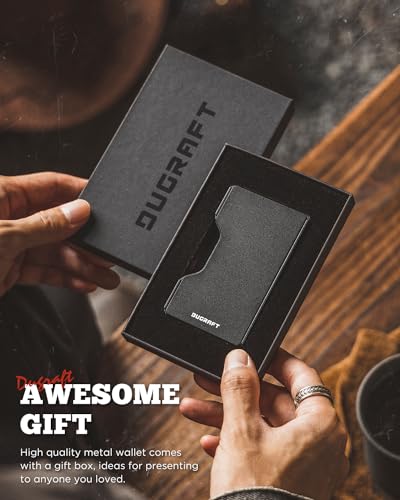 HOT ! DUGRAFT Minimalist Card Wallet For Men - Slim RFID Blocking Front Pocket Credit Card Holder & Money Clip - Mens Metal Wallet for 15+ Cards
