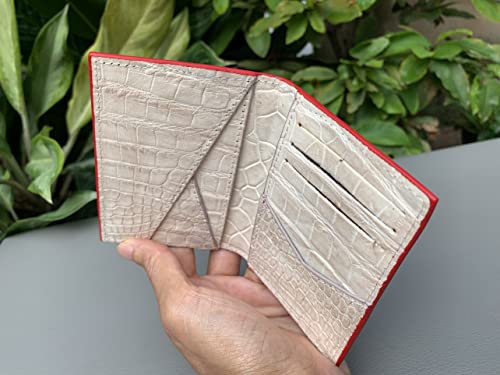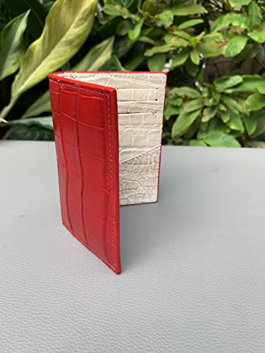 HOT ! Red and White Genuine Alligators Crocodile Double Side Leather Credit Card Holder