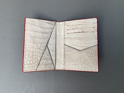 Red and White Genuine Alligators Crocodile Double Side Leather Credit Card Holder 7