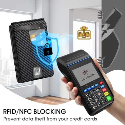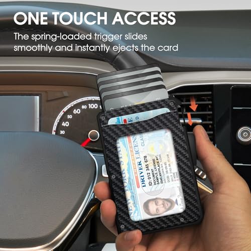 Wallet for Men, Smart Pop Up Wallet, Slim Minimalist RFID Blocking Card Holder, Aluminum Case, Magnetic Closure 10-14 Card Capacity, ID Window, Cash Slot (Carbon Fiber) 4
