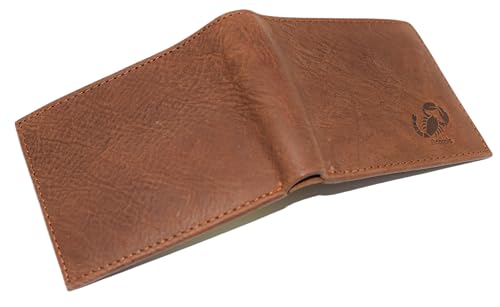 MARSHAL Scorpio Logo Men's Bifold Trifold RFID Blocking Real Leather Wallet Scorpion Zodiac Sign (Bifold) 6