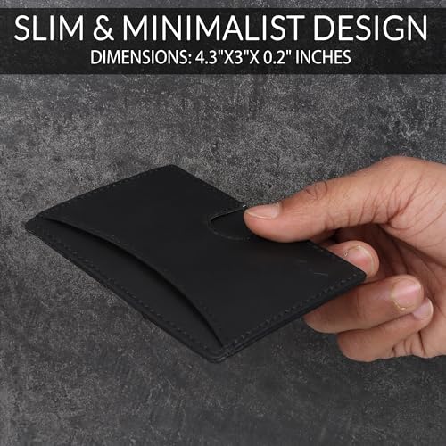 • EFFICIENT and SLEEK: Our minimalist wallet for men boasts 3 card slots, including an built-in pull-strap provides easy access to your everyday cards tucked away in the pockets, capable of accommodates up to 8 cards while maintaining a slim profile. Crafted for modern life, our Wallet with pull out card holder measures just 4" x 3" x 0.2", ensuring a slim and effortless fit into your pocket, purse, or travel pack, wherever you may go.