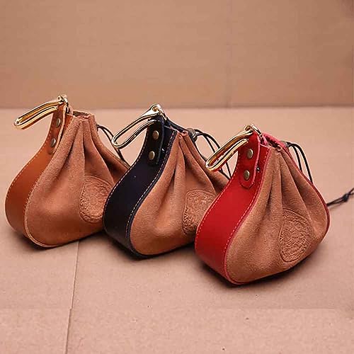 HOT ! 1-Pack Leather Coin Pouch - Mini Coin Organizer with Drawstring for Men & Women (Red)