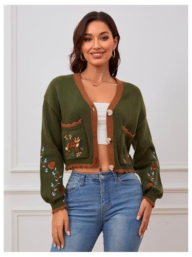 More information about Women's 2025 Floral Embroidery Cardigan Cottage Core Boho Cardigans Vintage Western Cropped Sweaters Fall Outwear
