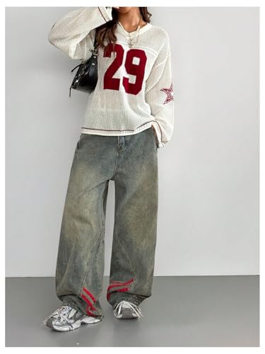 More information about Women's Y2k Going Out Tops Oversized Jersey Shirt Graphic V Neck Crochet Pullover Sweater Long Sleeve Knit Tops