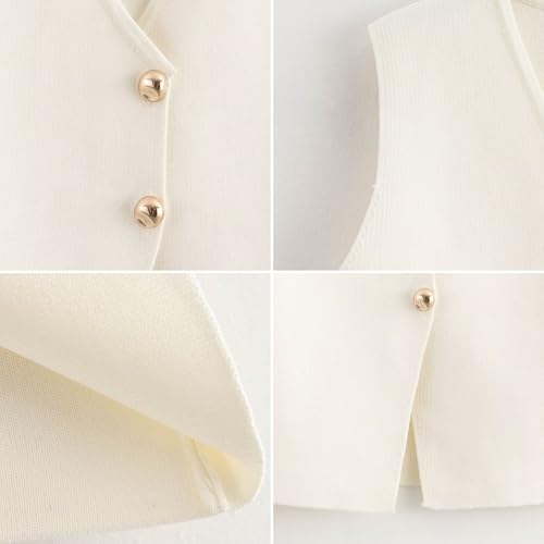 FindThy Women’s Cropped Knit Vest V Neck Button Up Solid Color Sleeveless Gilet Tank Tops 4