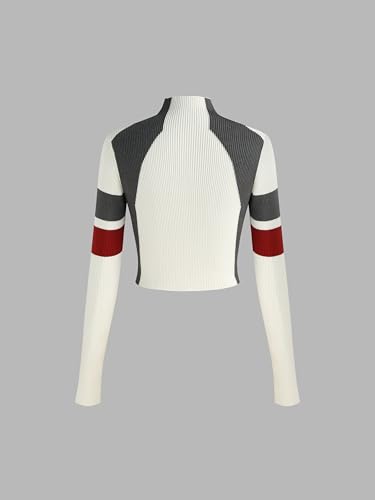 CIDER Women’s Cardigan Knit Zip Up Jackets Color Block Mock Turtleneck Long Sleeve Crop Tops Winter Outfit 4