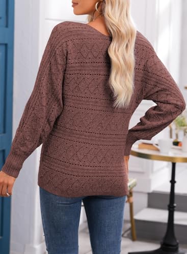 EVALESS Women's Crochet Boat Neck Long Sleeve Loose Fit Sweaters Fall Winter Clothes for Women Fashion 2025 2