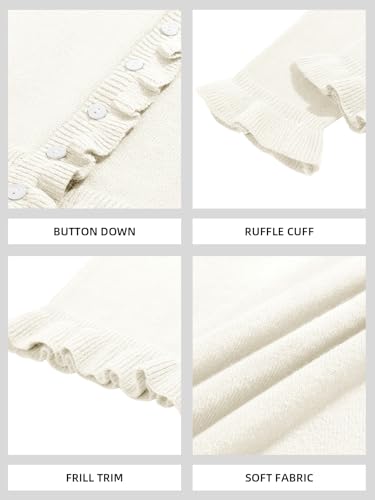 Saodimallsu Womens Ruffle Cardigan Sweaters Button Up Crew Neck Long Sleeve Cropped Sweater Cute Soft Knit Tops 4