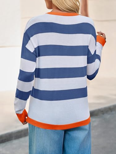 HOT ! Yousify Womens Long Sleeve Color Block Shirts Casual Loose Fit Striped Tops Knit Lightweight Pullover Sweaters