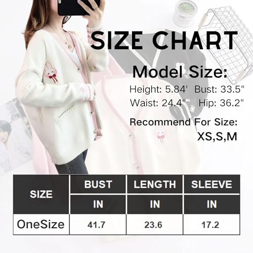 • Vintage 80s cute rabbit cardigan kawaii sweaters, features two side pockets, long sleeved, ribbed cuffs, suitable for school, cosplay, daily wear, work office, dates, shopping, vacation, family photo