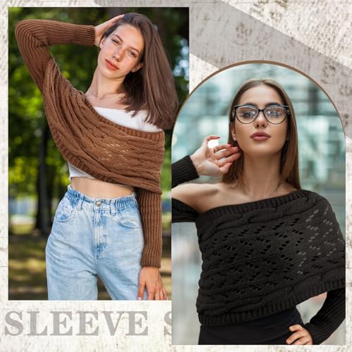 Geyoga 2 Pcs Scarf with Sleeves for Women Knitted Wrap Sweater Scarf with Sleeves Shrugs for Women Wrap Shawl 3