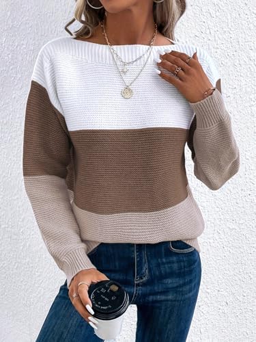 More information about Womens Long Sleeve Crew Neck Color Block Fall Fashion Knitted Pullover Sweaters Jumper Tops