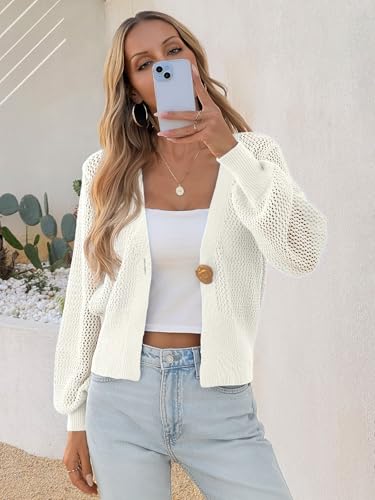 More information about Cicy Bell Womens Cropped Crochet Cardigans Hollow Out Button Down Lantern Sleeve Knit Sweaters Casual Mesh Loose Fit Cover Up