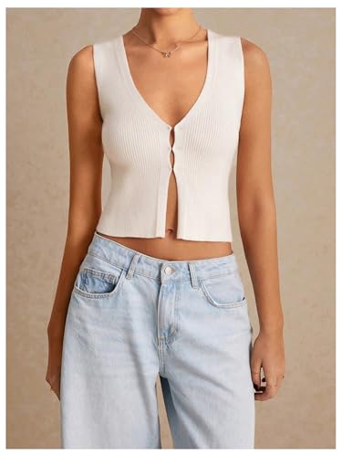 HOT ! GORGLITTER Women's Knit Top V Neck Sleeveless Button Down Sweater Vest