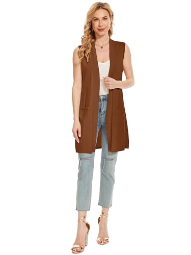 HOT ! Moss Rose Long Vest for Women Sleeveless Lightweight Open Front Cardigans Ribbed Knit Outwear with Pockets