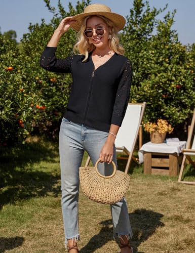 GRACE KARIN Womens Lightweight Summer Cardigan 3/4 Sleeve Cropped Cardigan Dressy Zip Up Cardigans Jacket 3