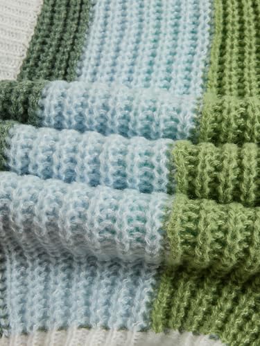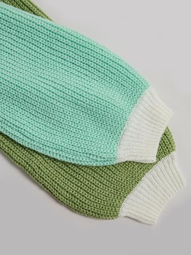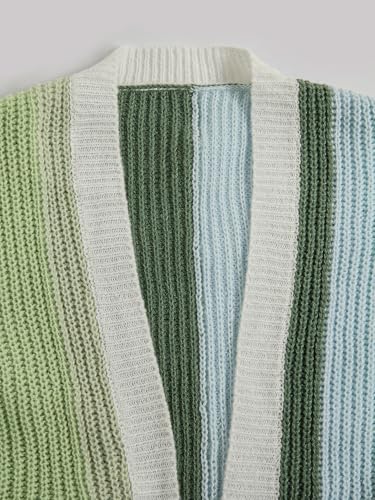 SEGT Women's Chunky Knit Open Front Color Block Long Sleeve Loose Short Cropped Cardigan Sweaters 6