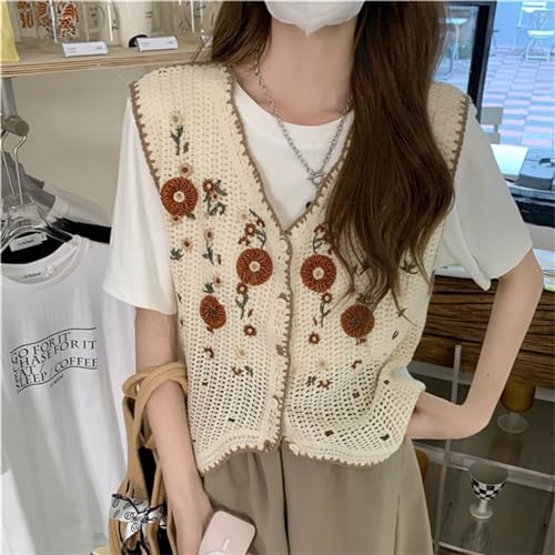 More information about Womens Floral Print Sweater Vest Sleeveless V Neck Vintage Button Front Cardigan Crochet Crop Knit Vest Top