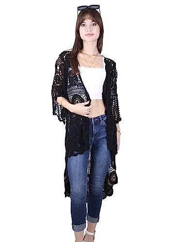 HOT ! Anna-Kaci Women's Crochet Long Vest Boho Short Sleeve Kimono Cardigan Swimwear Cover up
