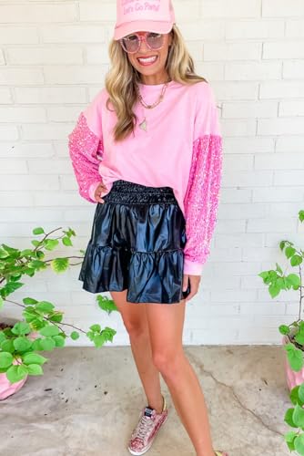 • Pink Sequin Patchwork Long Sleeve Pullover Top: This dazzling top features a sequin patchwork design that is sure to turn heads and make a statement.