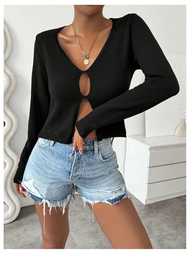 More information about Women's Y2K Cut Out Sweater V Neck Split Cropped Sweater Open Front Long Sleeve Knitted Pullover Tops Streetwear