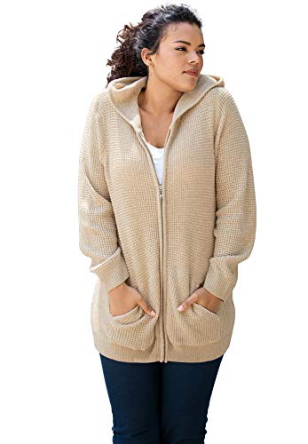 HOT ! Roaman's Women's Plus Size Thermal Waffle Hoodie Zip Up Cardigan Jacket