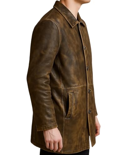 Men's Distressed Vintage Supernatural Style Brown Trench Leather Coat - Classic Handmade Trench Leather Jacket for Men 3