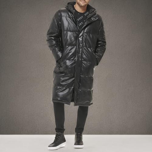 More information about DKNY Mens Faux Leather Long Quilted Fashion Coat